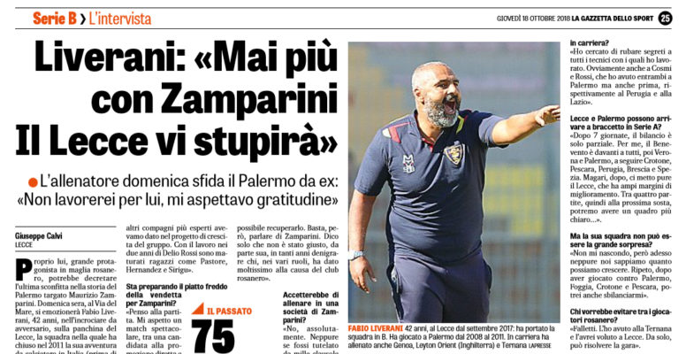 «A Walter Sabatini, il d.s. che mi ha aiutato tanto nella carriera di calciatore. Ci terrei a fargli conoscere il mio Lecce». Queste alcune delle parole di Fabio Liverani rilasciate ai microfoni de “La Gazzetta dello Sport”.