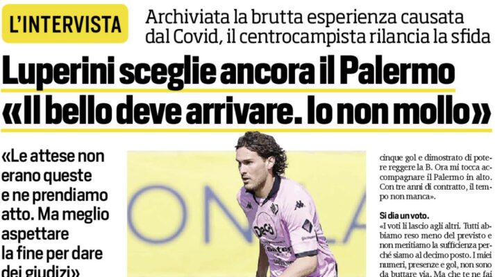 L’edizione odierna del “Corriere dello Sport” riporta le dichiarazioni di Gregorio Luperini, centrocampista del Palermo: