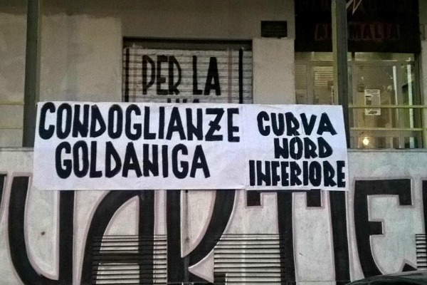 Dopo la tragedia avvenuta ieri pomeriggio che ha visto morire il padre del difensore del Palermo Edoardo Goldaniga in un incidente d’auto, anche la curva Nord Inferiore ha espresso il proprio cordoglio. “Condoglianze Goldaniga” recita uno striscione apparso oggi in città. In alto la foto.