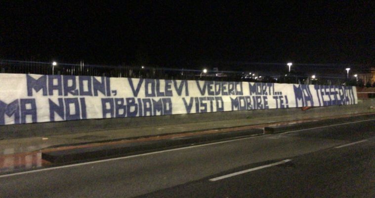 “Maroni, volevi vederci morti ma noi abbiamo visto morire te! Mai tesserati”.