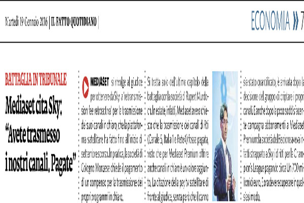 Le voci del matrimonio possibile tra Mediaset e Sky non cessano, ma se si farà, il matrimonio, si tratterà di una unione al contrario, perchè a differenza di quanto accade di solito i due player della pay tv all’italiana si troveranno prima in tribunale. Poi si vedrà. Mediaset si è infatti rivolto al giudice per ottenere da Sky la ‘retransmission fee retroattiva’ per la trasmissione dei suoi canali in chiaro, che la piattaforma satellitare ha fatto fino all’inizio di settembre scorso, come scrive oggi il “Fatto Quotidiano”. In pratica, la società di Cologno Monzese chiede il pagamento di un compenso per la trasmissione dei propri programmi in chiaro. Si tratta solo dell’ultimo capitolo della battaglia con la società di Rupert Murdoch. In estate, infatti, Mediaset aveva chiesto che la trasmissione dei canali di Rti (Canale 5, Italia 1 e Rete4) fosse pagata, visto che per Mediaset Premium offrire anche canali in chiaro è un valore aggiunto. La citazione della pay tv satellitare di fronte al giudice, senza però che il danno sia stato quantificato, è arrivata dopo la decisione del gruppo di criptare i propri canali. E anche dopo la poco soddisfacente campagna abbonamenti a Mediaset Premium: la società del Biscione aveva infatti strappato a Sky i diritti per la Champion’s League pagando circa Un 700 milioni di euro. E ora deve recuperare in qualsiasi modo. Nel frattempo, tuttavia, si rincorrono le voci di una possibile fusione che oggi vengono riprese da Il Sole 24 Ore, secondo cui il 2016 inizia più o meno come era finito il 2015, in casa Mediaset Premium, la pay tv del Biscione. Mediobanca caldeggia un necessario, e «rivoluzionario», matrimonio tra i due arcirivali Silvio Berlusconi e Rupert Murdoch: fondere insieme Sky, la storica pay-tv nata da Stream e Tele+, con Premium, che ha lanciato un guanto di sifda “scippando” al rivale l’ambita Champions League per 3 anni. Il mercato italiano del 2016, però, (e più in generale i numeri delle pay tv in Europa e Usa) non è una torta in grado di sopportare due piattaforme: le tv a pagamento perdono abbonati. E’ l’effetto dell’arrivo delle piattaforme pay in streaming via internet. E proprio lo sbarco di Netflix sarebbe la spinta a riprendere in mano il dossier. A officiare il rito si propone la banca che fu di Enrico Cuccia: da tempo suggeriscono un matrimonio che, a differenza dei Promessi Sposi, «s’ha da fare» per ragioni di mercato, ma che per ora i due ipotetici fidanzati snobbano, forse anche per ragioni tattiche. Mediaset ha staccato un maxiassegno (circa 200 milioni all’anno) per strappare i contenuti a Sky, che spendeva circa 130 milioni. È arrivato il momento di dover unire le forze?