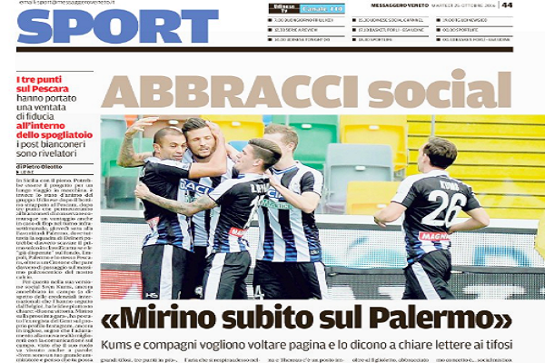 “In Sicilia con il pieno. Potrebbe essere il progetto per un lungo viaggio in macchina, è invece lo stato d’animo del gruppo Udinese dopo il bottino strappato al Pescara, dopo tre punti che permetteranno ai bianconeri di conservare comunque un vantaggio anche in caso di flop nel turno infrasettimanale, giovedì sera alla Favortita di Palermo, dove tuttavia la squadra di Delneri potrebbe davvero scavare il primo solco in classifica tra se e le “già disperate” sul fondo, Empoli, Palermo e lo stesso Pescara, oltre a un Crotone che pare davvero di passaggio sul massimo palcoscenico del nostro calcio. Per questo nella sua versione social Sven Kums, ancora annebbiato in campo (a dispetto delle credenziali internazionali che l’hanno seguito dal Belgio), ha le idee piuttosto chiare: «Buona vittoria. Mirino sulla prossima gara», ha postato l’ex regista del Gent sul proprio profilo Instagram, ancora in inglese, segno che l’adattamento alla nuova realtà migliorerà con la comunicazione sul campo, visto che il suo ruolo va vissuto anche a parole: «Sven sono un tuo grande ammiratore e penso che tu possa diventare il nostro faro di centrocampo», gli ha risposto incoraggiandolo “nichmau83”, segno che la fiducia dei tifosi bianconeri su Kums è intatta, o quasi. I like sul messaggio del belga sono centinaia, migliaia (5.811 in 24 ore) invece quelli per un altro punto di domanda bianconero, l’argentino Rodrigo De Paul ieri sostituito ma per nulla deluso, anzi è entusiasta del Friuli, dell’ambiente Friuli: «Grande squadra, grandi tifosi, tre punti in più», riassume il numero 10 che Gigi da Aquileia vuole trasformare definitivamente in un esterno di centrocampo, un po’ quello che faceva prima di emigrare a Valencia già in patria, dove continuano a seguirlo sul profilo Instagram, tanto che il post è anche in spagnolo”. Questo quanto riportato su “Il Messaggero Veneto”.