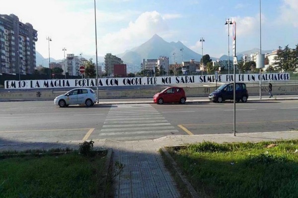 E’ del 15 dicembre la notizia del ritiro dal calcio giocato di Fabrizio Miccoli, icona del Palermo ed appena ritiratosi dopo l’ultima esperienza maltese al Birkirkara. In onore dell’ex numero 10 rosanero, alcuni ultras rosanero hanno deciso di dedicargli uno striscione che recita: “F.M. 10: la maglia portata con onore, per noi sarai sempre più di un calciatore”. Sopra la foto dello striscione, tratta dalla pagina Facebook “Rosanero Storia”.