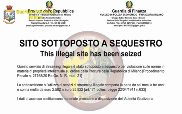 La Guardia di Finanza di Milano ha eseguito un blitz importante, infatti il nucleo operativo delle Fiamme Gialle ha chiuso una tv pirata con oltre 50mila utenti. Secondo quanto riporta “Sky tg 24”, la piattaforma pirata trasmetteva soprattutto partite di calcio, sono state denunciate tre persone per violazione della legge sul diritto d’autore e approfondimenti sono in corso per identificare “i singoli utenti destinatari dell’IPTV illegale. Adesso gli utenti rischiano condanne fino a 4 mesi per violazione del diritto d’autore.