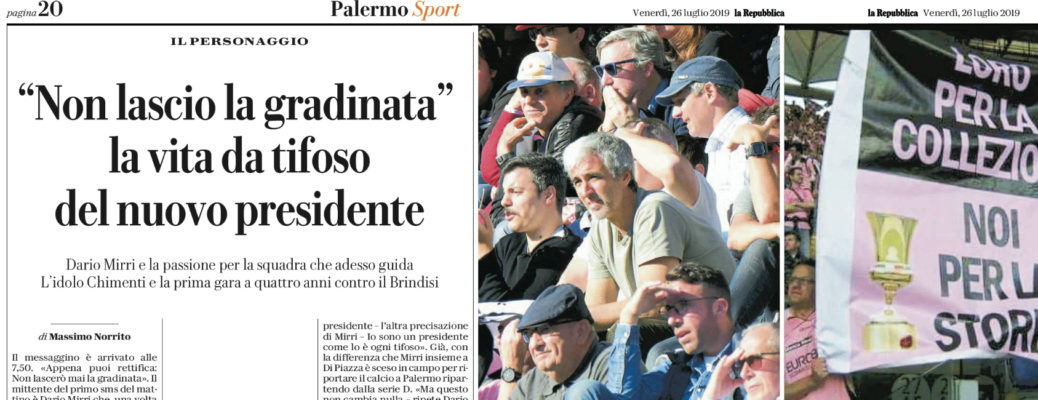 L’edizione odierna de “La Repubblica” riporta un messaggio scritto ed inviato da Mirri, tiene a rettificare quanto scritto dallo stesso quotidiano il quale diceva che adesso lascerà il suo posto in gradinata per trasferirsi in Tribuna d’onore: «Appena puoi rettifica: Non lascerò mai la gradinata». Questo quanto scritto da Mirri al giornalista. Fila 20, posto 19: quello è da sempre il suo posto in gradinata e da quel posto lui non si vuole muovere. Nemmeno adesso che il Palermo è suo – scrive questo il quotidiano, che di seguito riporta altre parole del nuovo proprietario rosanero: «Ma io non sono il presidente – l’altra precisazione di Mirri – Io sono un presidente come lo è ogni tifoso. Non lascerei mai il mio posto da tifoso. Io resto un tifoso (ma non certo il primo) poi un presidente esattamente come lo devono essere tutti i tifosi i veri proprietari autentici ed eterni del nostro Palermo».