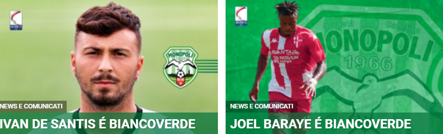 Attraverso delle note sul proprio sito ufficiale il Monopoli ha definito il doppio colpo De Santis-Baraye: