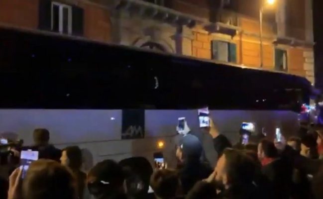 Nel giorno del match di Serie A tra Napoli e Juventus, partita che ha senza dubbio un certo fascino nonostante la situazione dei partenopei, si sono già scaldai gli animi attorno all’hotel dove soggiornano gli juventini. Insulti e cori da parte dei tifosi azzurri, ma l’episodio che ha attirato l’attenzione è quello legato al pullman bianconero, che, al momento del parcheggio, ha investito delle transenne colpendo anche il marciapiede rischiando inoltre di colpire qualche tifoso.