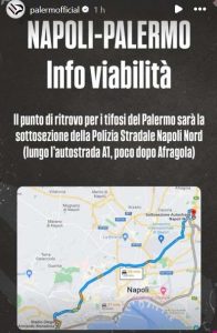 Tra meno di sei ore il Palermo si giocherà l’accesso agli ottavi di finale di Coppa Italia in casa del Napoli. Attraverso il proprio profilo Instagram, il club rosanero ha dato delle informazioni ai propri tifosi per raggiungere lo stadio Diego Armando Maradona. Il punto di ritrovo per i sostenitori palermitani sarà la sottosezione della Polizia Stradale Napoli Nord (lungo l’autostrada A1, poco dopo Afragola).