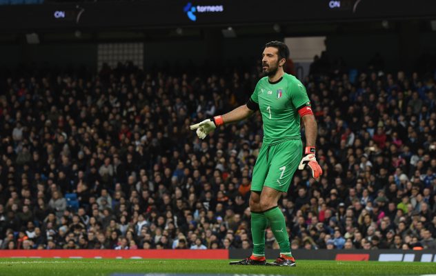 MANCHESTER, ENGLAND - MARCH 23: Gianluigi Buffon of Italy in action during the International friendly match between Italy and Argentina at Etihad Stadium on March 23, 2018 in Manchester, England. (Photo by Claudio Villa/Getty Images) *** Local Caption *** Gianluigi Buffon