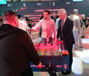 Italia, visita di Abodi a Casa Azzurri: il Ministro gioca a biliardino coi tifosi presenti (FOTO)