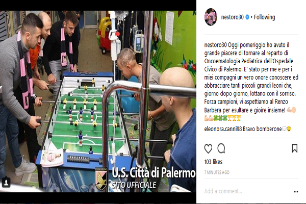 Attraverso il proprio profilo Instagram, Ilija Nestorovski, ha commentato la visita fatta oggi pomeriggio da una delegazione della squadra rosanero, al reparto di Oncoematologia Pediatrica del Civico. Ecco la foto e il messaggio postati dall’attaccante rosanero: