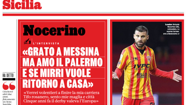 Visto il suo legame, un occhio alla Serie D lo butta? «Non è che lo butto,seguo sempre, vedo i risultati, e inoltre conosco molto bene Castagnini perché è stato il mio d.s. a Piacenza e ci sentiamo spesso. Con Sagramola ci conosciamo perché era d.g. a Palermo ai miei tempi, non conosco soltanto il presidente Mirri». Vorrebbe conoscerlo? «Mi piacerebbe tanto, vedo una persona seria, umile, è un tifoso più che un presidente. Credo stia vivendo unsogno, quello di riportare la sua squadra a grandi livelli».Un ruolo in futuro? «Ammetto che mi piacerebbe giocare ancora un anno o due, fisicamente sto bene, e mentalmente pure. Se chiamasse il Palermo sarebbe bello, perché potrei chiudere il cerchio. In estate dissi a Castagnini che se bisognava dare una mano io ci sarei stato. Sul ruolo,nel mio piccolo, lo sto facendo già adesso perché mi ritengo ambasciatore dei rosanero in giro per il mondo». Queste le parole dell’ex centrocampista del Palermo, Antonio Nocerino, rilasciate ai microfoni di “La Gazzetta dello Sport” in merito a un suo possibile futuro in rosanero.