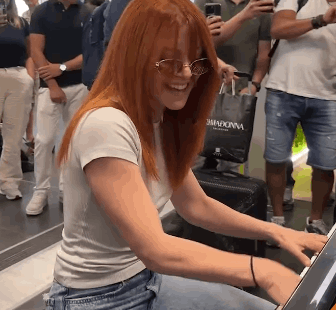 Noemi sorprende tutti all’aeroporto di Palermo: esibizione improvvisata al pianoforte