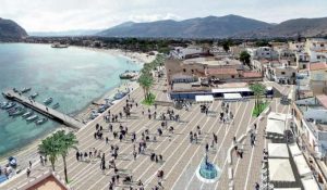 Una grande piazza che si affaccia sul mare, come una rete da pesca stesa al suolo, è pronta a trasformarsi...