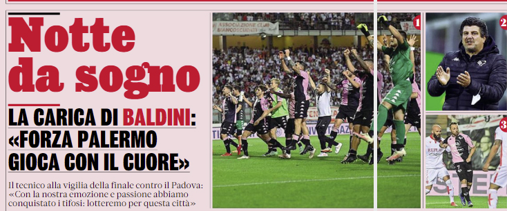L’edizione odierna de “La Gazzetta dello Sport” si sofferma sulla gara finale di questa sera tra Palermo e Padova e riporta le parole di Baldini.