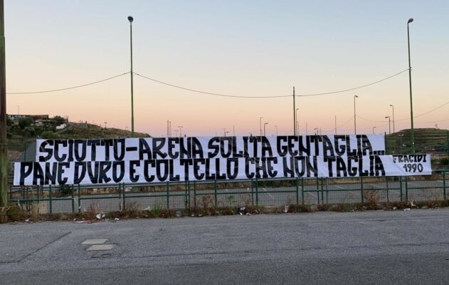 Nuovo striscione ultras a Messina: “Sciotto-Arena, solita gentaglia!” (FOTO)