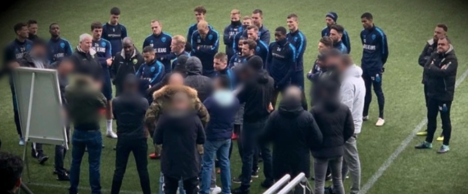 L’Ado Den Haag, squadra olandese militante nel massimo campionato nazionale, non vince da un mese e tale rendimento ha contribuito all’attuale penultimo posto. A dare una scossa significativa ai giocatori e a tutto lo staff ci ha pensato un gruppo di tifosi che, durante un allenamento, ha fatto irruzione nel campo in modo del tutto pacifico facendo una vera e propria lezione di tattica alla squadra. Da comprendere se questa lezione darà i suoi frutti a livello di risultati. In alto la foto che ritrae i tifosi con la squadra.