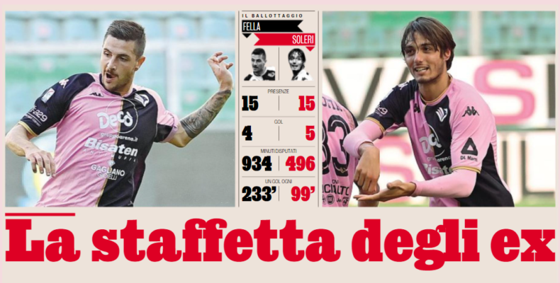 La sfida al passato, in doppia veste, con una corsa per una corsa una maglia che vivrà fino all’ultimo. Il Palermo che ha bisogno dei suoi attaccanti per vincere proverà a operare il sorpasso al Monopoli poggiandosi sulla legge dell’ex. Due in questo caso, perché sia Giuseppe Fella sia Edoardo Soleri hanno vestito la maglia biancoverde. L’Hanno fatto a un anno di distanza l’uno dall’altro.