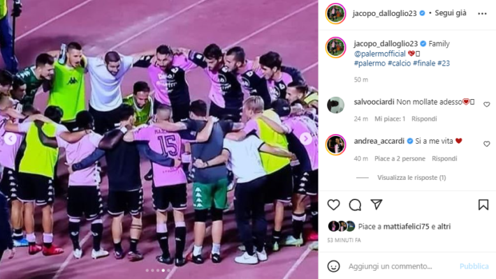 Attraverso il proprio profilo Instagram Jacopo Dall’Oglio esulta dopo la gara vinta ieri dal Palermo contro il Padova.