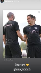 Il Palermo continua la preparazione in vista della sfida di sabato 21 settembre contro il Cesena. I rosanero, reduci dalla vittoria in casa della Juve Stabia per 3 a 1, sono in cerca di continuità e, contro la squadra allenata dall’ex Michele Mignani, punteranno sul fattore Renzo Barbera per ottenere il secondo successo consecutivo. Alessio Dionisi, intanto, spera nel recupero di Fabio Lucioni. Il Palermo, infatti, ha pubblicato delle foto sulla seduta odierna e l’esperto difensore è presente con i suoi compagni. Dario Saric ha condiviso la foto nelle proprie Instagram stories aggiungendo la seguente descrizione: “Direttore”. Una stretta di mano che potrebbe suggerire una sorta di bentornato.