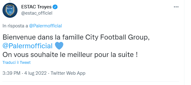 Bienvenue dans la famille City Football Group, @Palermofficial 💙