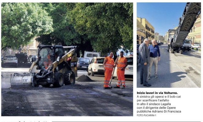 Gli operai hanno cominciato di buon mattino a tagliare e a rimuovere con la fresatrice il vecchio manto stradale in via Salesio Balsano per poi proseguire, nel corso della giornata, a scarificare il lato sinistro della carreggiata di via Volturno. Su tutto il perimetro, almeno fino a quando non si chiuderà il cantiere, c’è il divieto di sosta. A distanza di vent’anni dall’ultima manutenzione, sono partitiierii lavori per rifare completamente l’asfalto della strada che collega il Tribunale al teatro Massimo, uno degli assi viari più importanti della città che era diventato pericoloso per auto, moto e pedoni.