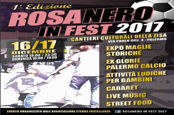 Sabato 16 e domenica 17 dicembre, prenderà il via la prima edizione del rosanero in fest 2017, evento organizzato dall’associazione dell’eterna fratellanza. La manifestazione si terrà nei cantieri culturali della Zisa, precisamente in via Paolo Gili n°4. Il programma dell’evento prevede:
