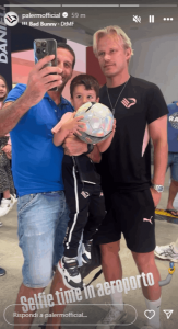 Il Palermo è atterrato in Friuli, dove domani affronterà l’Udinese nei sedicesimi di finale di Coppa Italia. La squadra rosanero, guidata da mister Inzaghi, è stata accolta all’aeroporto da un gruppo di tifosi che non hanno perso l’occasione per salutare i propri beniamini, chiedendo foto e autografi.