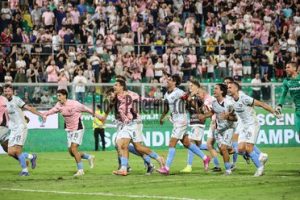 PALERMO – Il “Renzo Barbera” si è vestito a festa per il big match tra Palermo e Bari, con oltre 32mila spettatori sugli spalti e una cornice di pubblico da Serie A. Una serata di cori, emozioni e gol che ha visto i rosanero imporsi per 2-0 grazie alle reti di Le Douaron e Gomes, consolidando il primato in classifica.