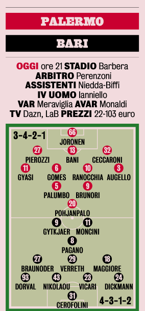 Gazzetta dello Sport: “Palermo-Bari, le probabili formazioni”