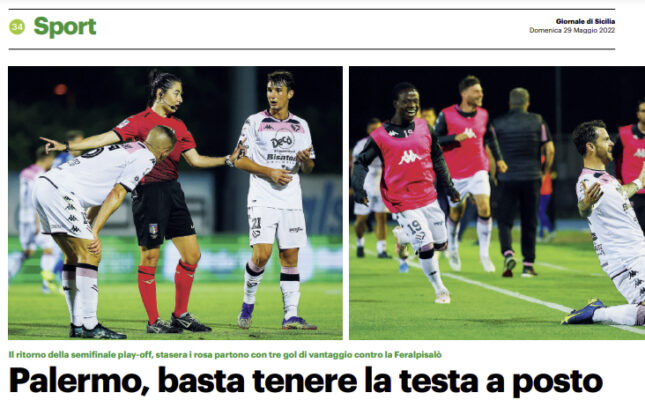 L’edizione odierna de “Il Giornale di Sicilia” si sofferma sulla gara di oggi tra Palermo e Feralpisalò.