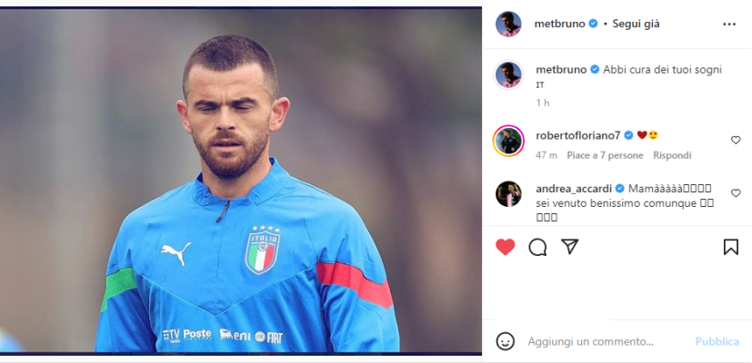 Attraverso il proprio profilo Instagram Matteo Brunori ha pubblicato un post in merito allo stage in azzurro. Tanti i commenti dei compagni rosanero.
