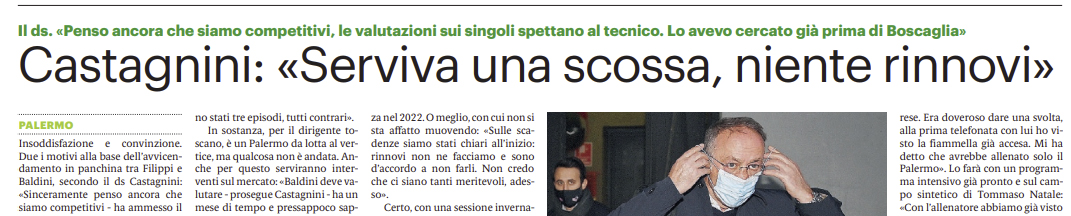 L’edizione odierna de “Il Giornale di Sicilia” si sofferma sulle dichiarazioni di Castagnini in occasione della conferenza stampa di presentazione di Baldini.