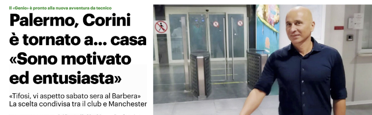 L’edizione odierna de “Il Giornale di Sicilia” si sofferma sul ritorno di Corini a Palermo.