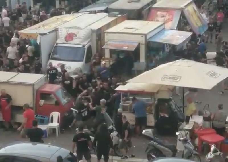 Stasera nell’area in ci sono i furgoni della ristorazione, c’è stata un’altra scazzottata durata una decina di secondi. Alla rissa hanno partecipato più di venti persone. Sono intervenuti i poliziotti per sedare la lite. La tensione tra le due fazioni della stessa tifoseria resta molto alta