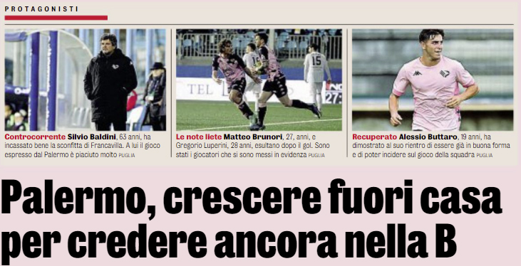 Dopo Foggia, Francavilla: eppure sono state due sconfitte completamente diverse. Se a Foggia i rosanero avevano subito una debacle totale, a Francavilla non avrebbero meritato di perdere. Anci, per lunghi tratti il Palermo ha messo sotto la squadra avversaria che in questo campionato ha fatto meglio di tutte le altre davanti ai propri tifosi, concedendo poco o nulla anche alle squadre più blasonate.