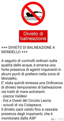 Il provvedimento di nuovo divieto di balneazione, che sarà valido fino a quando nuovi campionamenti non verifichino la cessazione del pericolo, riguarda le aree di mare antistanti piazza Valdesi, le zone ad est e ad ovest del Club Lauria e gli scivoli a mare di via Colapesce. Queste zone saranno delimitate con appositi cartelli.
