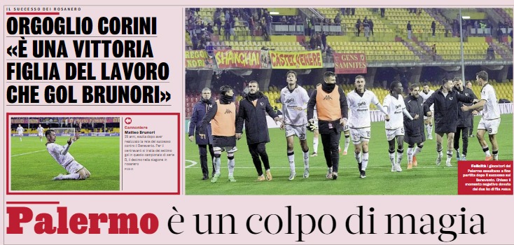 L’edizione odierna de “La Gazzetta dello Sport” si sofferma sulla vittoria del Palermo contro il Benevento.