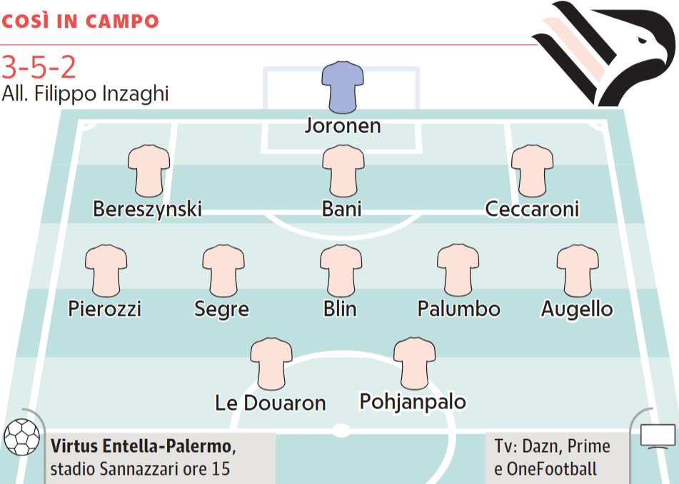 Per quanto riguarda la formazione, Geraci su la Repubblica Palermo segnala che il tecnico rosanero schiererà la miglior squadra possibile, pur dovendo rinunciare a Gomes, Gyasi e Ranocchia.