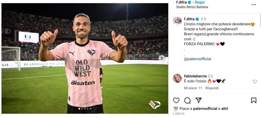 Il giorno seguente dalla vittoria dei rosanero contro la Feralpisalò, Federico Di Francesco, fresco di debutto con gol vittoria, ha voluto commentare la prestazione sua e dei suoi compagni sui social.