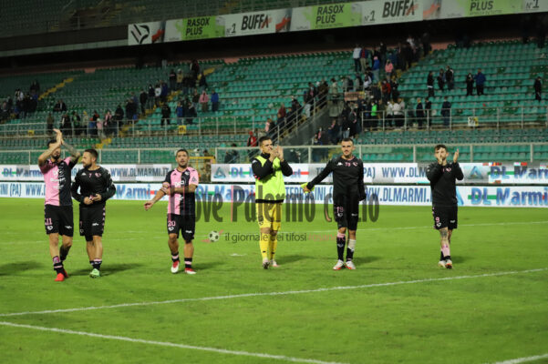 Oltre a qualche fischio iniziale da parte di tutto il pubblico sono poi arrivati scambi di cori: le curve rosanero al grido di “Foggia, Foggia”; il settore ospiti: “Palermo, Palermo” fino ad arrivare ad un univoco: “Chi non salta è barese” per poi concludersi in un applauso reciproco.