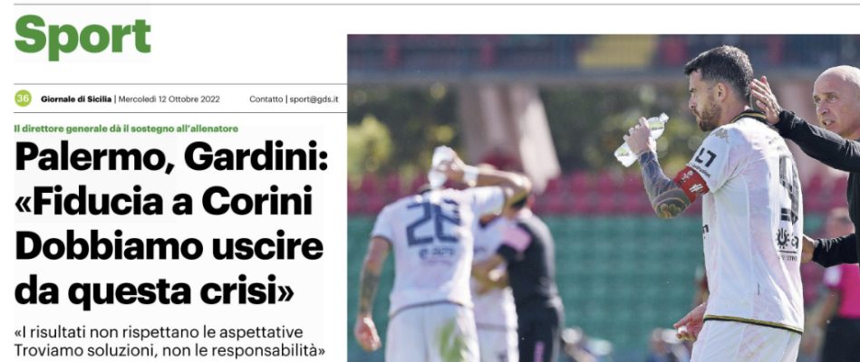 Palermo, Gardini: «Fiducia a Corini, dobbiamo uscire da questa crisi»