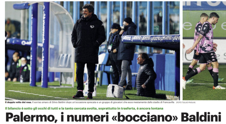 L’edizione odierna de “Il Giornale di Sicilia” si sofferma sui numeri del Palermo di Baldini, che non promuovono il tecnico.