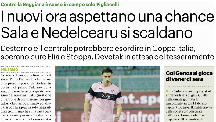 L’edizione odierna de “Il Giornale di Sicilia” si sofferma sul Palermo e i nuovi che aspettano una chance.