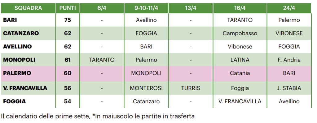 È tutto riaperto, dopo l’ultimo turno di campionato, tra scivoloni a sorpresa (quello del Catanzaro col Monterosi) e conferme necessarie. Quella del Palermo lo era, dopo tre pareggi pesanti con tre squadre in zona play-out. La vittoria col Taranto aveva bisogno di un supplemento e il 4-0 al Picerno ha rappresentato una prova di forza. Sempre in casa, però, lì dove i rosanero viaggiano a ritmi da Serie B (44 punti in 18 gare, neanche una sconfitta). La controprova serve in trasferta, dove Baldini va a caccia del suo primo «tris» di successi.
