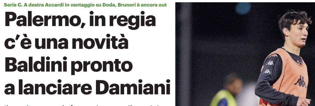 L’edizione odierna de “Il Giornale di Sicilia” si sofferma sul nuovo acquisto del Palermo, Damiani, che a Catanzaro potrebbe già essere lanciato da Baldini.