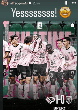 Il portiere del Palermo, Alfred Gomis, attualmente in fase di recupero da un infortunio, ha manifestato la sua gioia per la vittoria della squadra contro la Juve Stabia attraverso le sue storie di Instagram. Nonostante non sia stato in campo, Gomis non ha perso l’occasione di esprimere il suo supporto ai compagni, celebrando l’importante risultato ottenuto. A lui si è unito anche Alexis Blin, tornato tra i convocati dopo il suo infortunio, ha condiviso la stessa immagine del compagno scrivendo “Avanti cosi”.