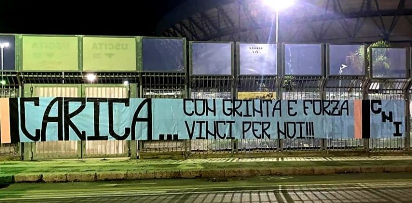 Dalla Curva Nord Inferiore arriva la carica alla squadra in vista del match attraverso uno striscione apparso nella notte al “Renzo Barbera”.