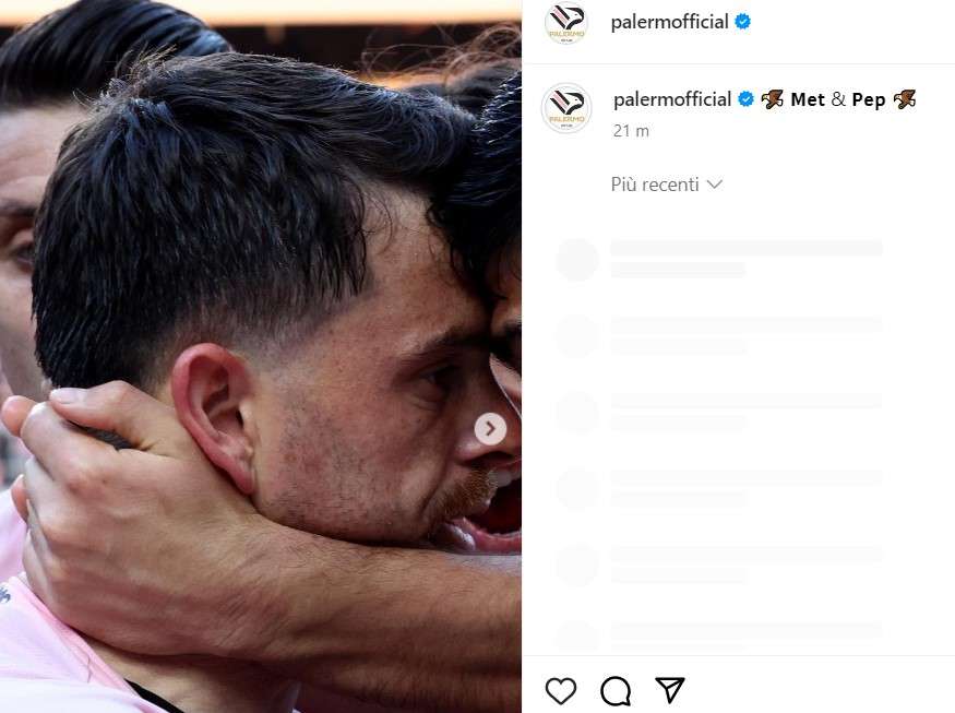 Matteo Brunori, autore di un gol e un assist, e Giuseppe Aurelio, protagonista di un’ottima prestazione, sono stati fondamentali per la vittoria di ieri pomeriggio del Palermo sul Como. Il club rosanero ha celebrato i due giocatori sui propri profili social con il seguente post: «Met & Pep».