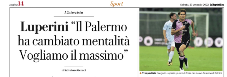 L’edizione odierna de “La Repubblica” ha riportato un’intervista a Gregorio Luperini il quale si è espresso in merito al campionato e agli obiettivi del Palermo.